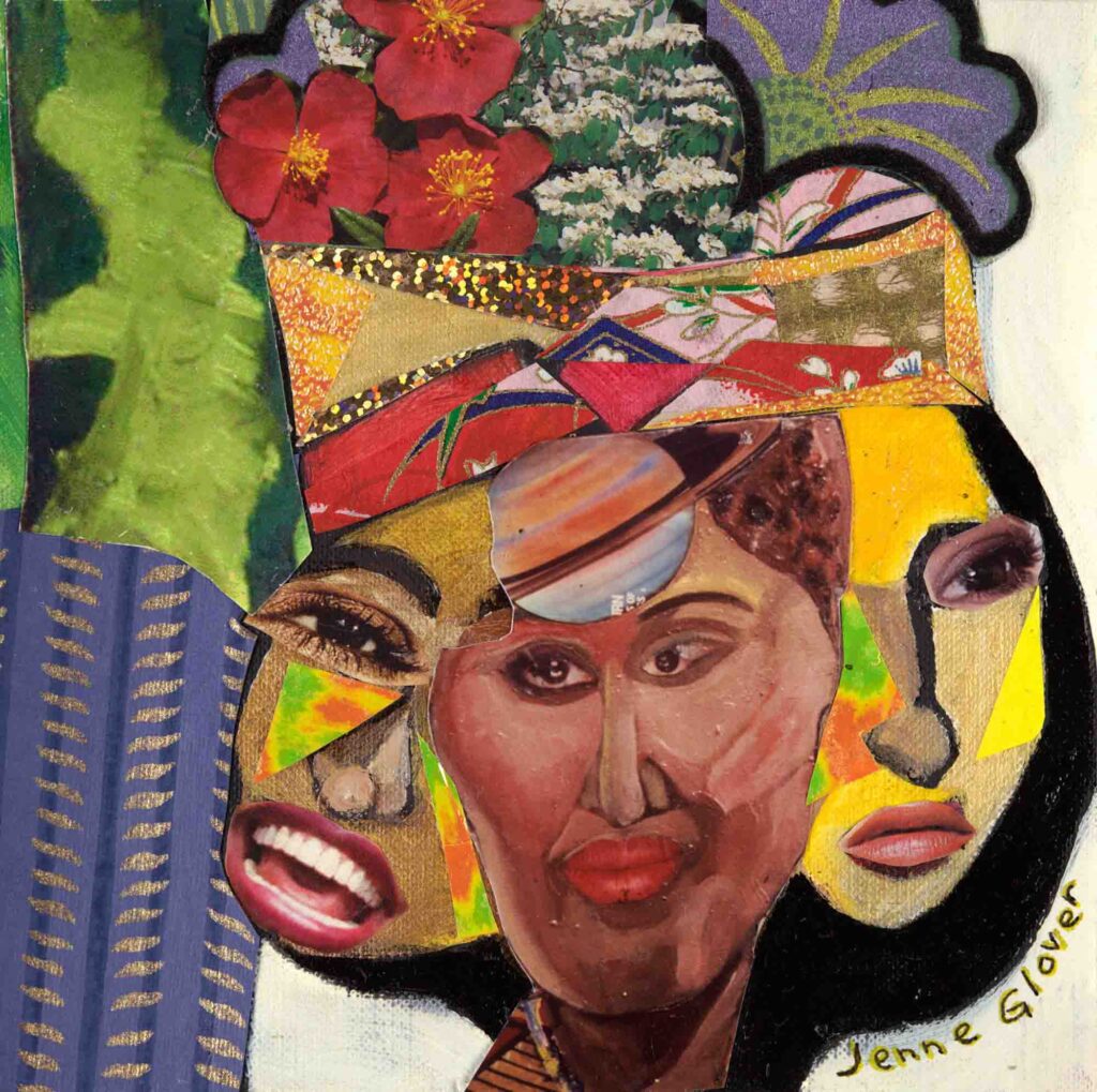 6″ x 6″ mixed media collage framed